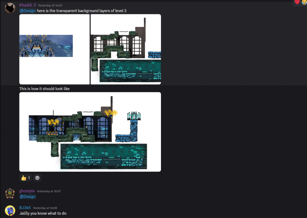 I finished my Level 3 scene and showed the team including the game designers, I also sent them the transparent layers of the background to them. All of the Game Artists seen the progress of the game mechanics by playing the game. The game designers told us about there being a good and 2 bad levels to the game.